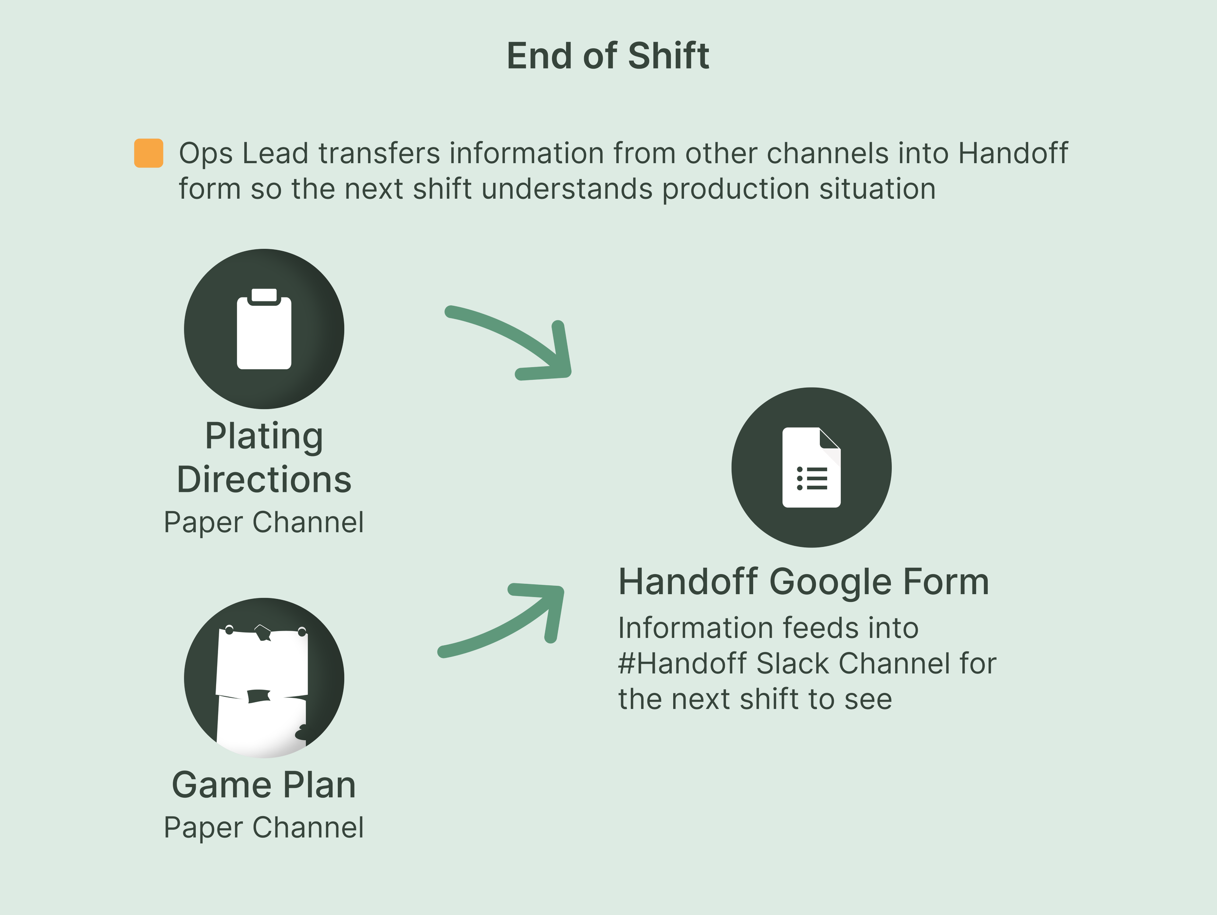 I designed the architecture of the solution by learning more about how the Ops Leads currently gather and communicate production information throughout their shift: