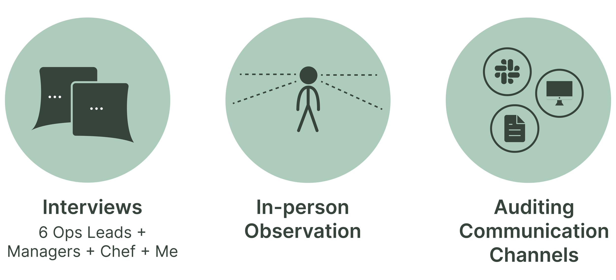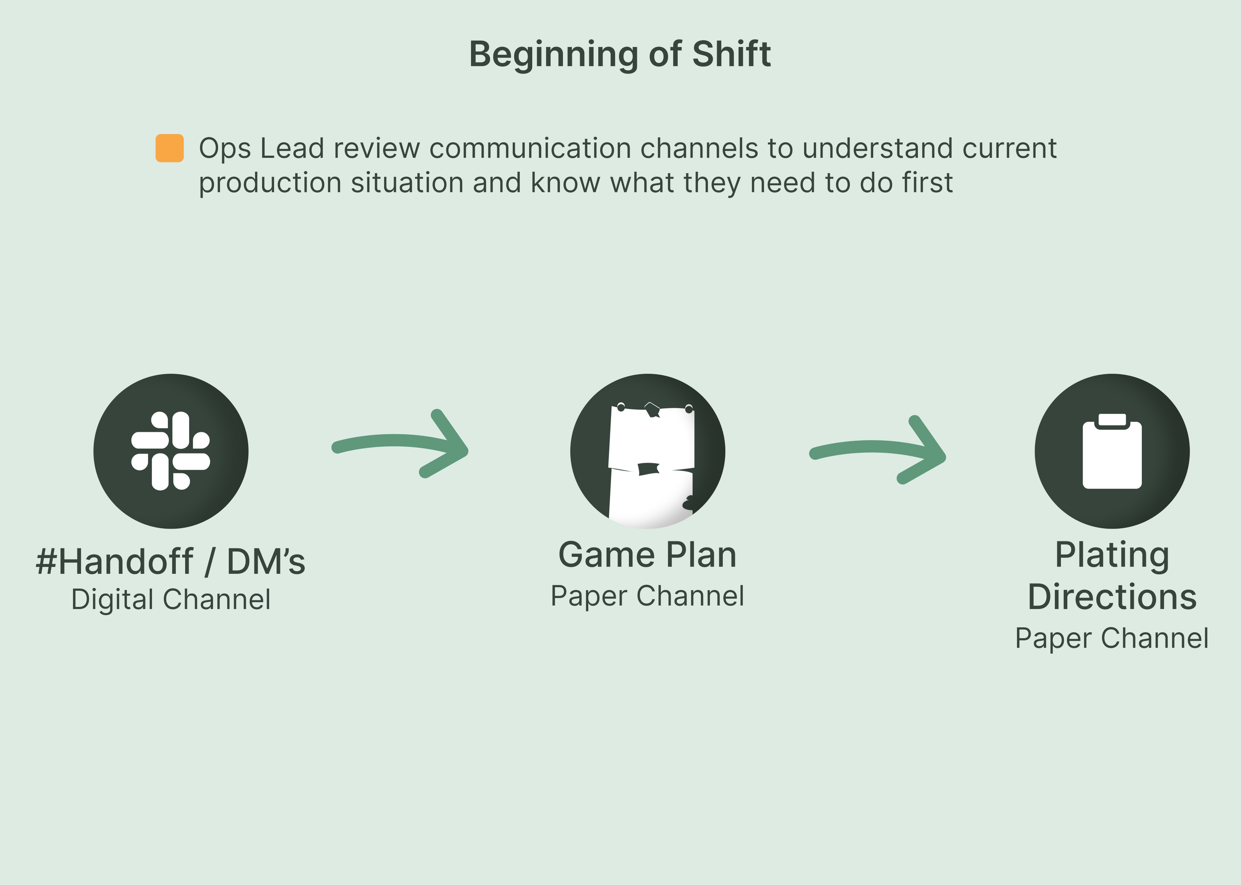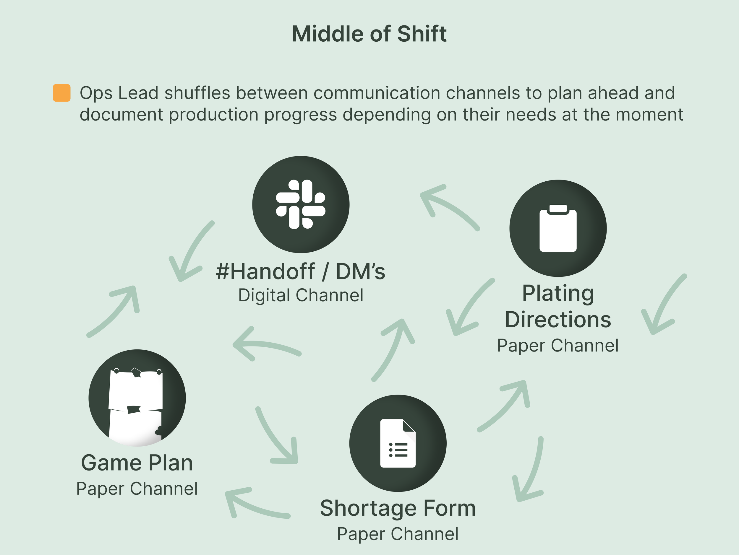 • Highly paper based communication system forces Ops Leads and Chefs to manually sync these channels to keep them up to date