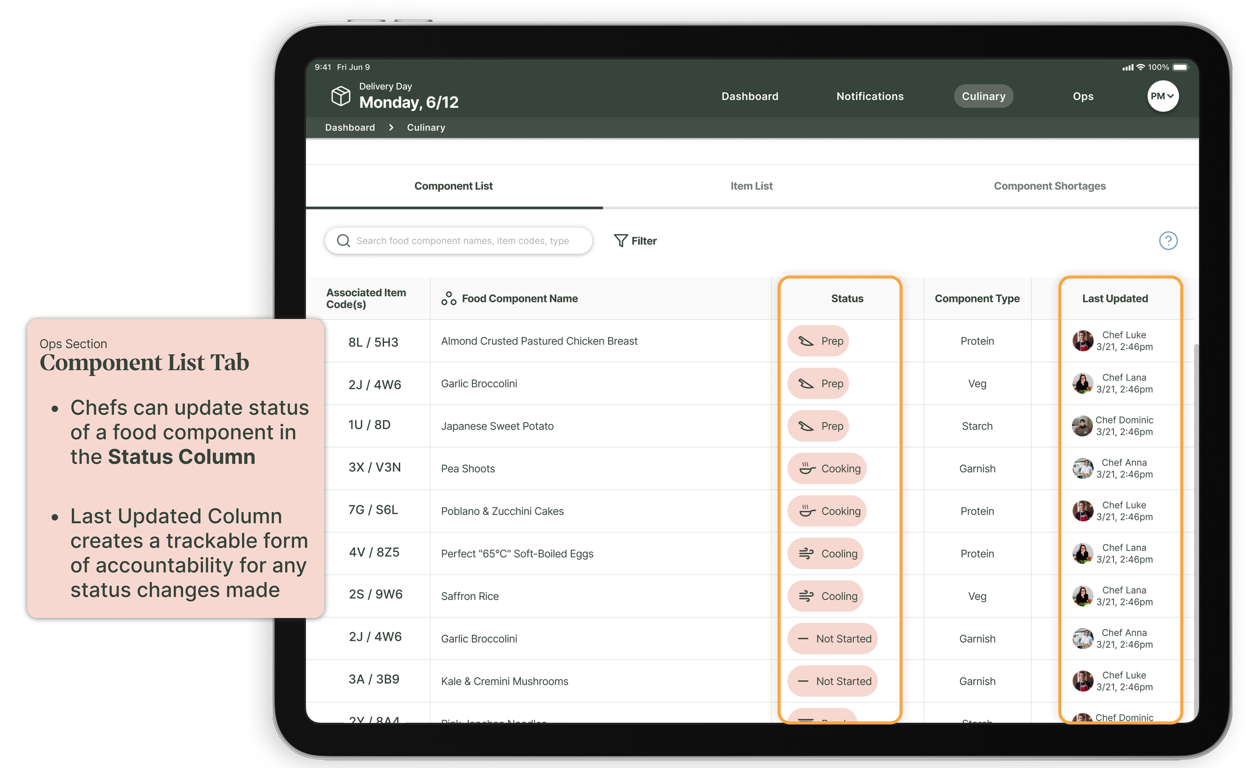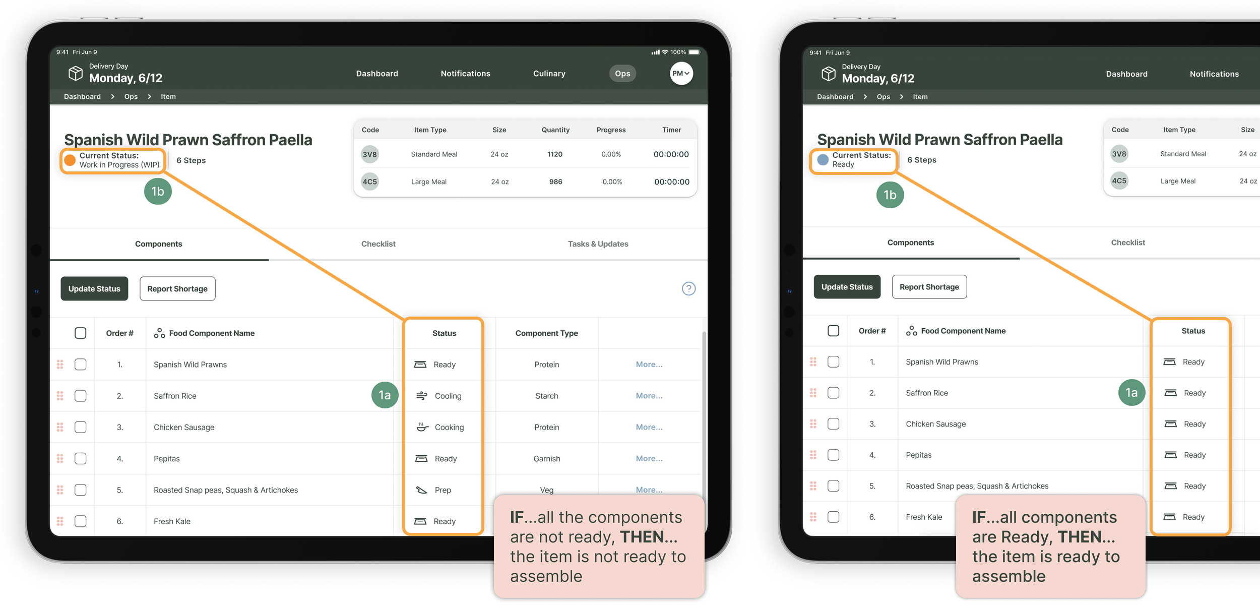 Now Chefs only keep track of food component status and the system will update the status of items for them