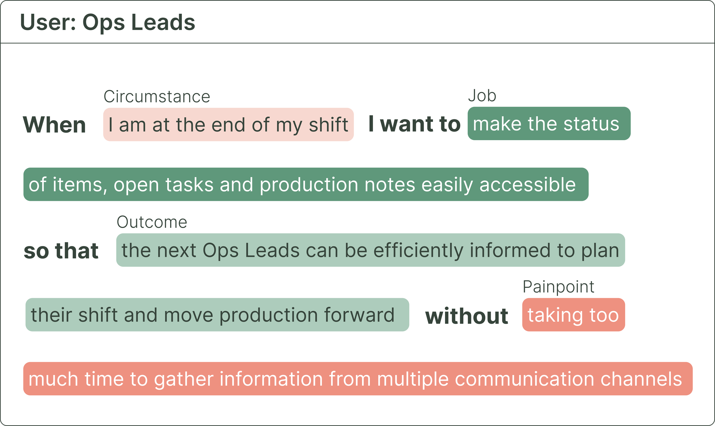 I hypothesized that If we could help better organize the Ops Leads’s thoughts and plans, then we could free up some of their working memory to focus on other tasks.