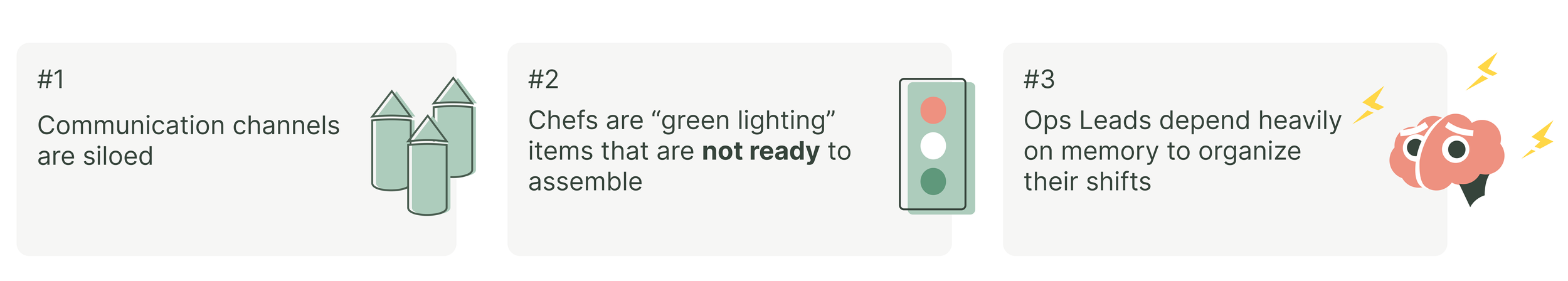 Problem #2: Chefs “green light” items before they are ready to assemble