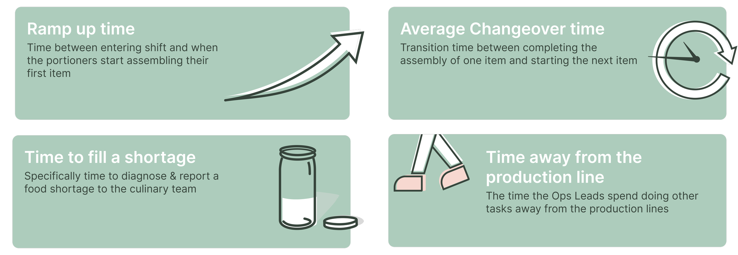 2. Overtime can be fixed by hiring more people. The portioner teams appeared to be understaffed. Ideally there should be 1 portioner for 1 component and often there were not.