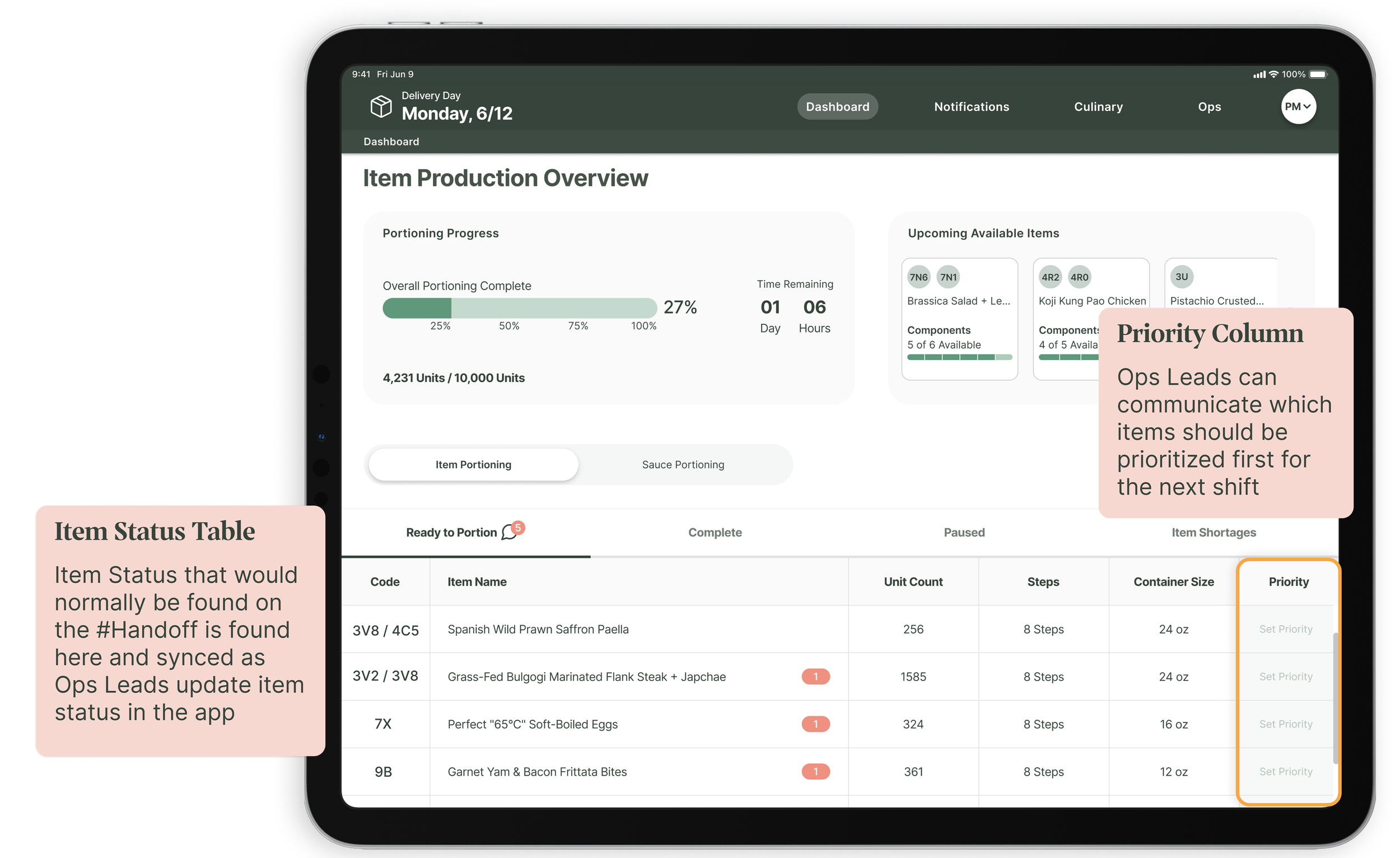 How might we rebuild the culinary & ops communication experience during portioning so we can improve the flow of production?