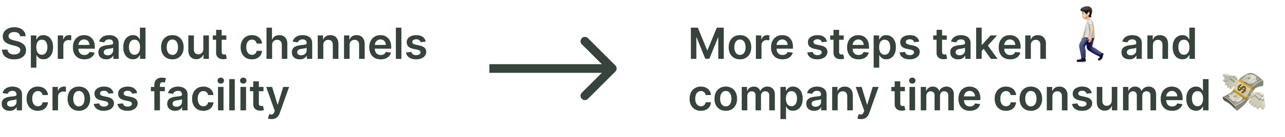 Extra effort is required to review and compare information on these channels because they are physically scattered throughout the 30,000 square foot facility.
